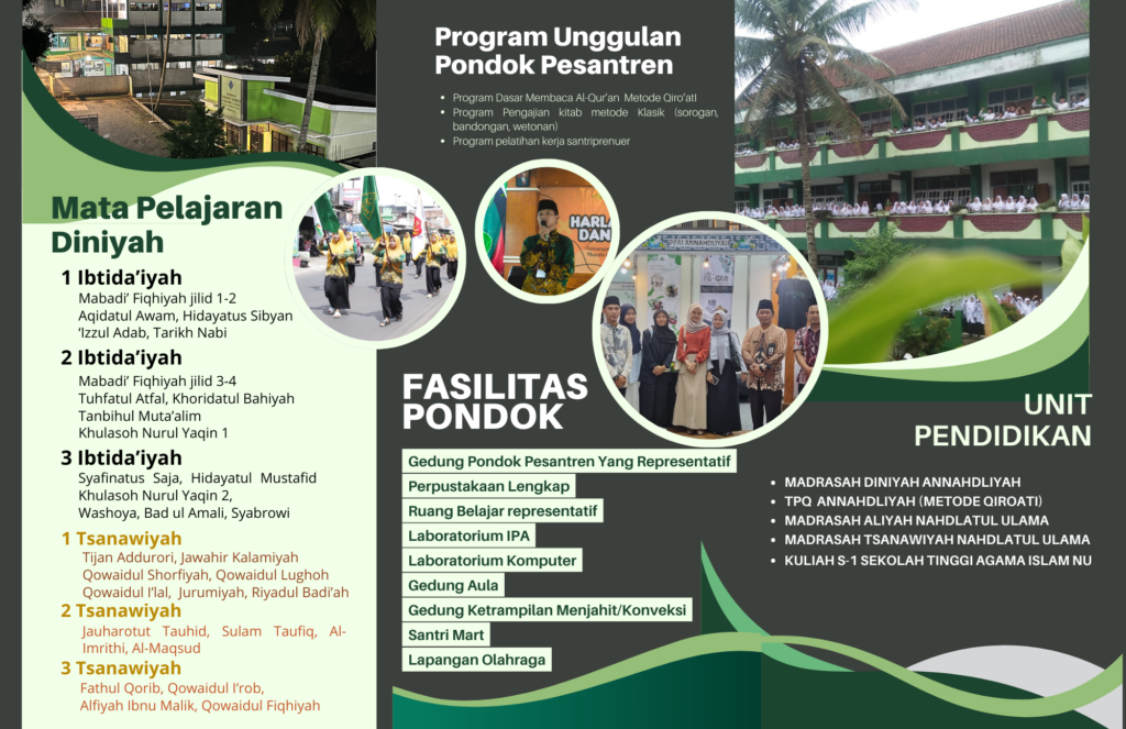 Madrasah Diniyah Annahdliyah adalah pembelajaran pendidikan Islam yang mengajarkan materi secara klasikal, bandongan, sorogan, muhafadloh yang di kelola dengan 2 (dua) jenjang :
