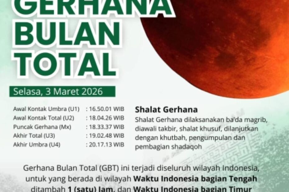 Gerhana Bulan Total 3 Maret 2026 Terlihat di Indonesia, PPAI Annahdliyah Ajak Santri Hidupkan Shalat Khusuf Berjamaah